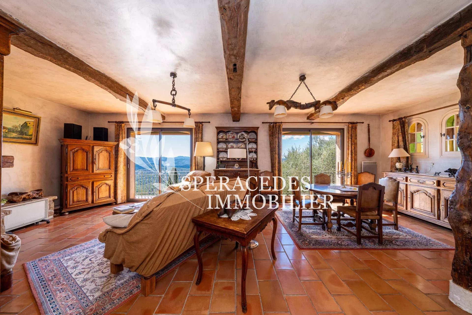 Located in Cabris, in a sought-after area, this charming house of about 135 sq.m offers a stunning panoramic view of the sea, the lake Saint-Cassien & Esterel. It sits on a plot of around 2,000 sq.m with a 10 x 5 m swimming pool with a pool-house.