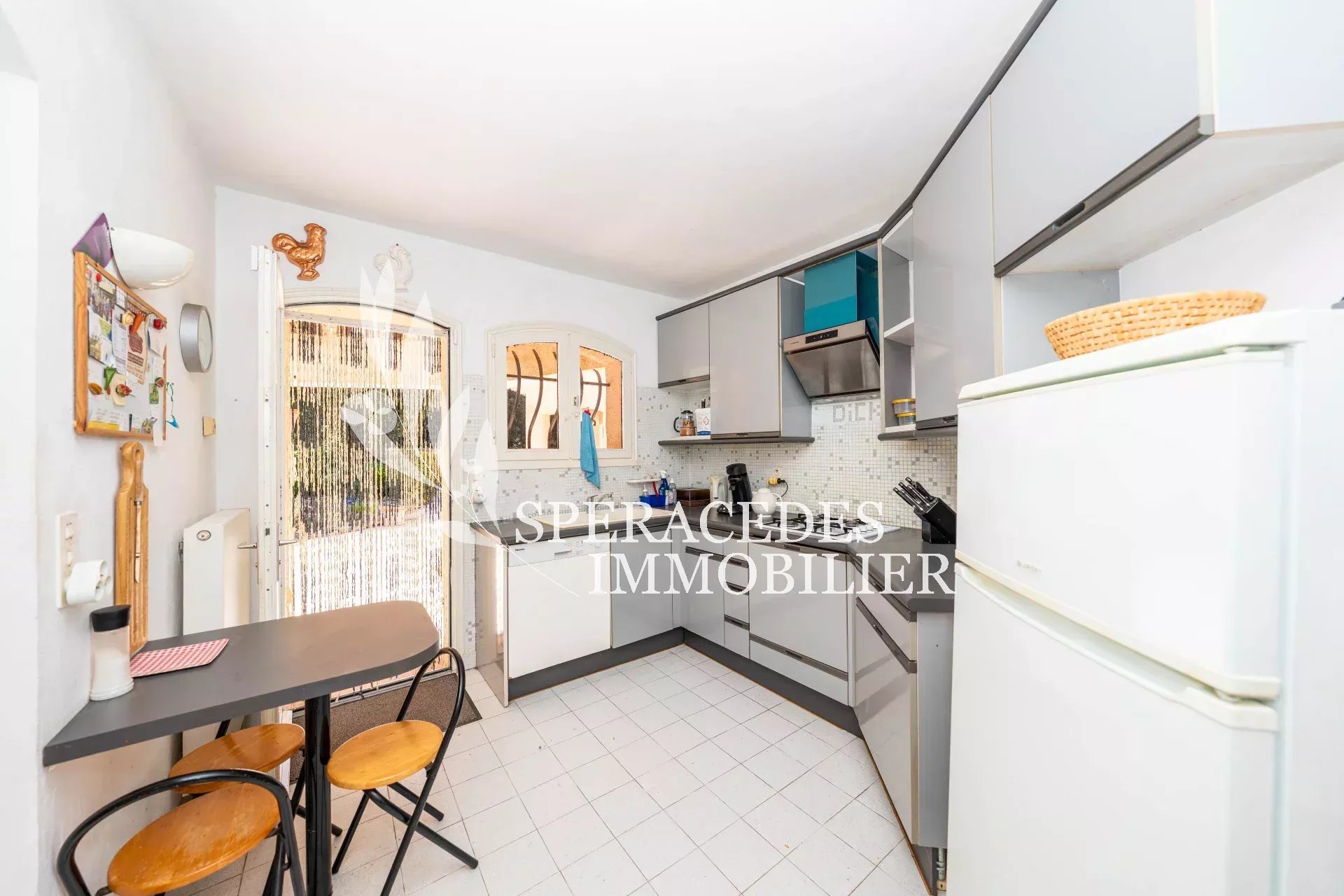 Un appartement indépendant comprenant un séjour, une cuisine, une chambre et une salle de bains.
